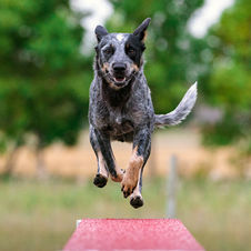 Skill-It: 3 yrs, Australian Cattle Dog/Border Collie Cross. I have always wanted an ACD/BC cross and when I heard there was a litter via a rescue, I jumped at the chance to get one. Skill-It is everything I could ask for in an agility partner, he has drive and focus and really loves to play this silly game with me. Skill-It is only 1 Q away from his ATChC at the age of 3 years old. Although the Qs are not what is important it is nice to see our hard work paying off as we successfully compete together. When Skill-It and I are not playing agility we can be found hiking out on the trails.